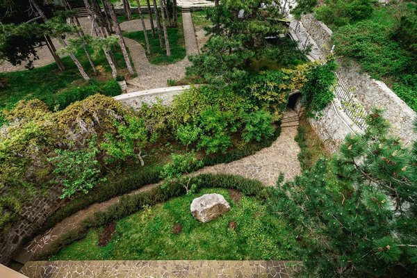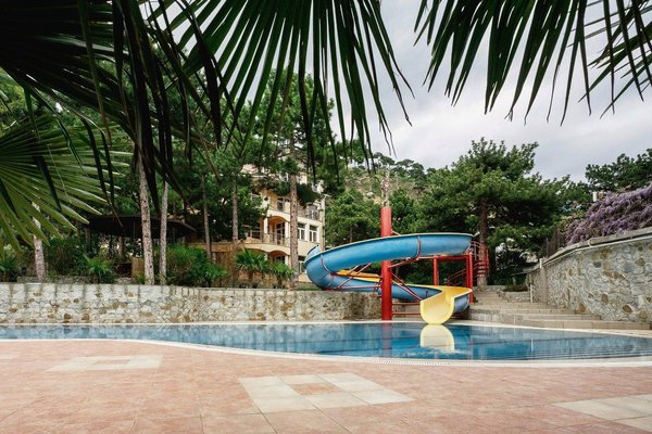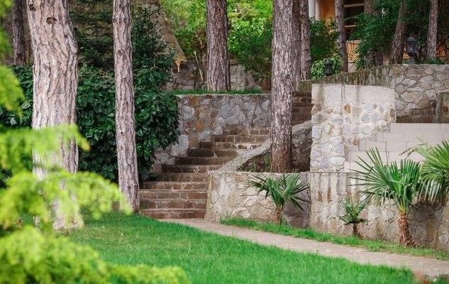 Территория вип отеля Крыма граничит с территорией Ялтинского горно-лесного природного заповедника. На закрытой территории более 2 гектаров в окружении вековых сосен и кедров расположены две обособленные трехэтажные комфортабельные виллы в Крыму с бассейном 15х7 м – вилла Мария и вилла Анастасия.