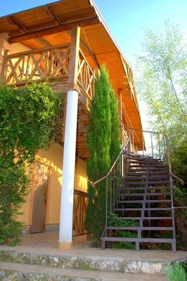 Самолетом до ж/д г. Симферополь, далее пройти 330 м до остановки, далее на рейсовом автобусе «Симферополь – Черноморское» до остановки «Автостанция Черноморское», далее на маршрутном такси «Черноморское – Маяк» до остановки «Храм», далее 1 км до отеля.