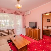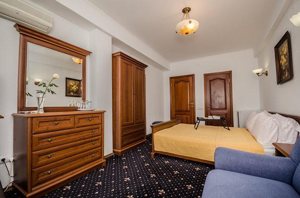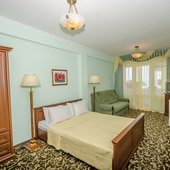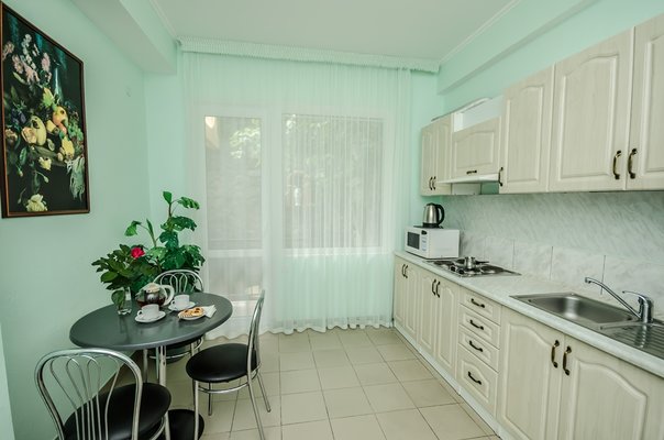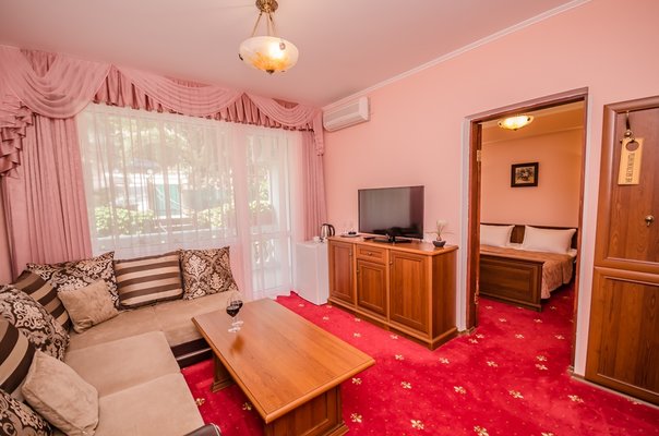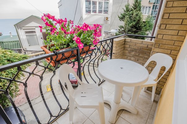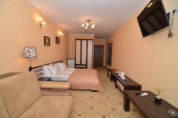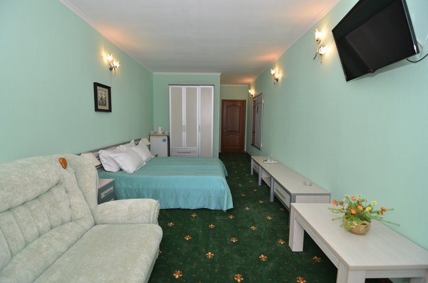 Мини-отель состоит из трех жилых корпусов, расположенных в разной степени удаленности от моря — на первой, второй и третьей береговых линиях. Двухместные номера категории «Стандарт», «Полулюкс» и «Люкс» укомплектованы необходимой мебелью и техникой, все они оснащены кондиционерами, телевизорами, собственными санузлами с душевой кабиной, в ряде комнат имеются балконы.