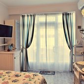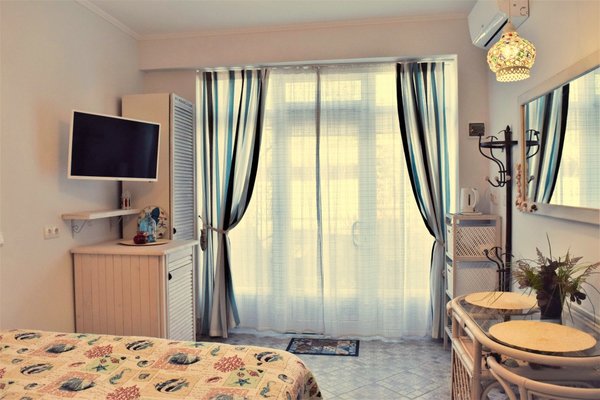Оформлен каждый номер в индивидуальном стиле. В каждом номере есть балкон и терраса. В личной ванной комнате установлен душ.