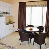 Каждый из номеров обустроен собственной мини-кухней, которая укомплектована соответствующей техникой. Здесь можно заказать еду и напитки прямо в номер. Также вкусно и сытно поесть можно в ближайших столовых, кафе и ресторанах. Поблизости есть несколько магазинов и супермаркетов.