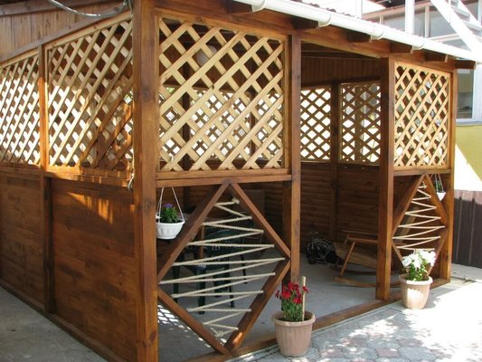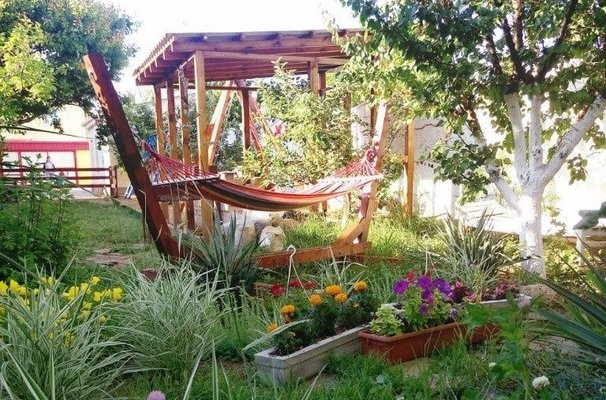 На территории летние беседки для отдыха 3 шт, детский домик с проектором, детская площадка, удобные гамаки и тд.