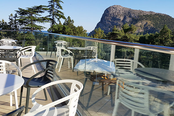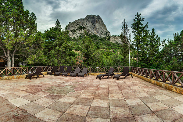 Гостиничный комплекс «Новый Свет» расположен в фантастическом месте, которое пленит своей красотой. Ступив на территорию нашего комплекса, вы с первой секунды почувствуете небывалую свежесть горного крымского воздуха, дуновение ветра, смешанное с запахом моря. Гостиничный комплекс расположен в большой можжевеловой роще, спускающейся каскадами к морю. По бальнеологическим показателям воздух, напоенный фитонцидами сосен и можжевельников, ароматами трав и морскими солями, является отличным средством для лечения и оздоровления дыхательной системы.