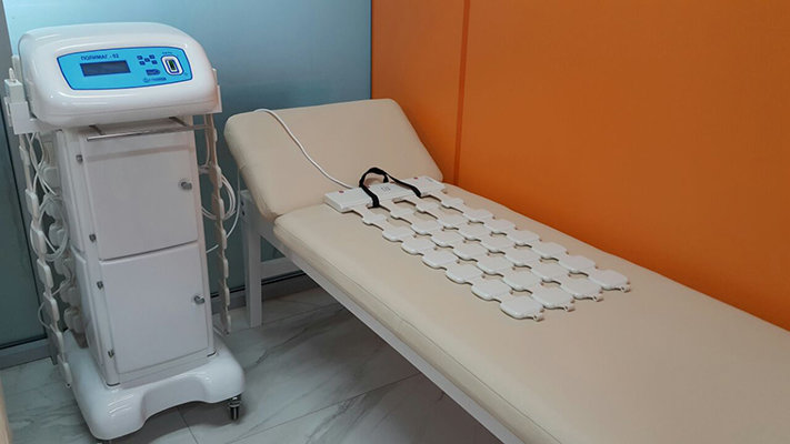 Процедуры: ультразвуковая и электротерапия, лазеротерапия, магнитотерапия, ингаляции, лимфодренаж, вакуумный массаж, лечебный и другие виды массажа, грязелечение.
