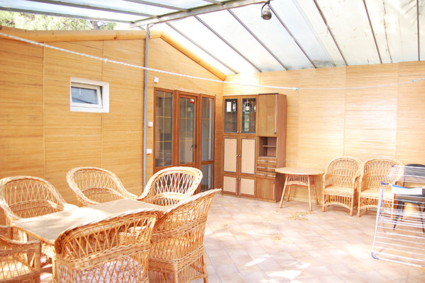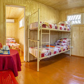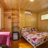 открытая охраняемая платная — в сезон (кроме люксов, полулюксов) ~200 руб/сутки