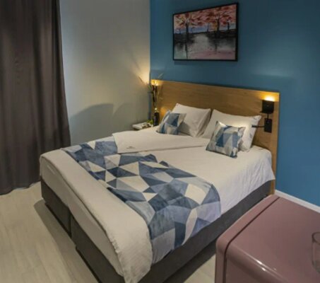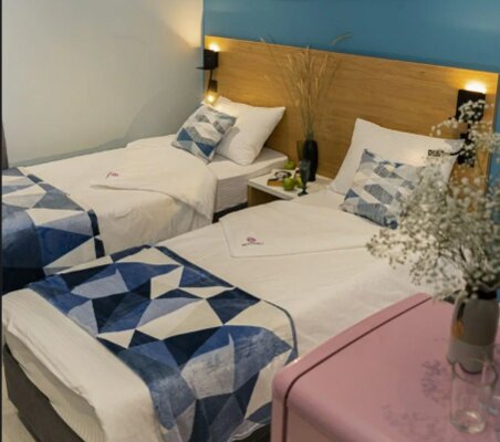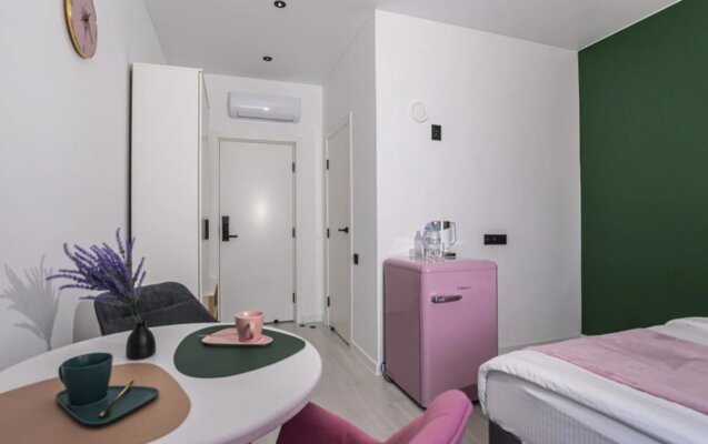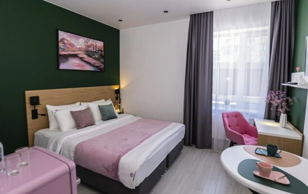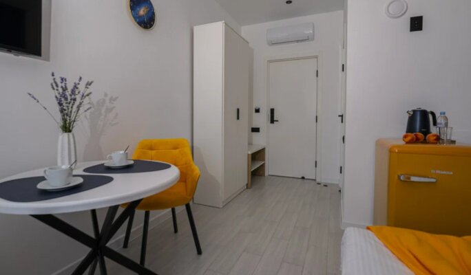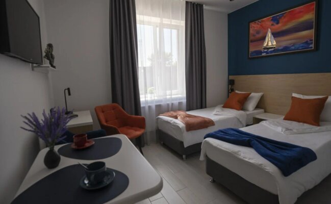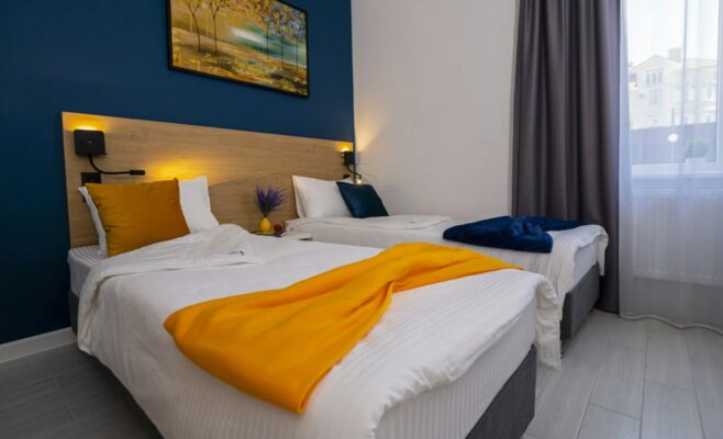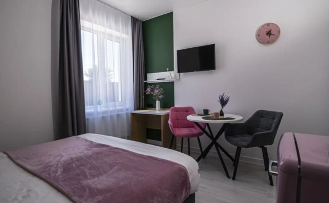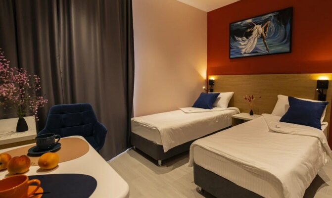 Номера предлагают двухместное размещение с повышенным уровнем комфорта. В каждом номере имеется кровать с ортопедическим матрасом, кондиционер, кабельное телевидение, быстрый Wi-Fi и рабочий стол. В ванной комнате предоставляется душ, фен, комплект полотенец, средства гигиены и стиральная машина.