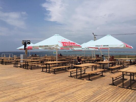 Фуд-корт Villagio приглашает гостей насладиться атмосферой у самого моря, обеспечивая отличные условия для отдыха. Здесь можно разместиться за уютным столиком с лавочками под навесом зонтика и насладиться разнообразием блюд, предлагаемых на выбор.