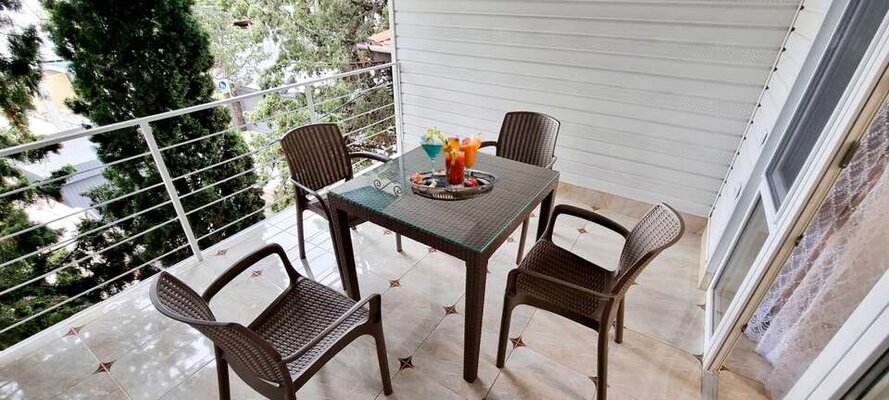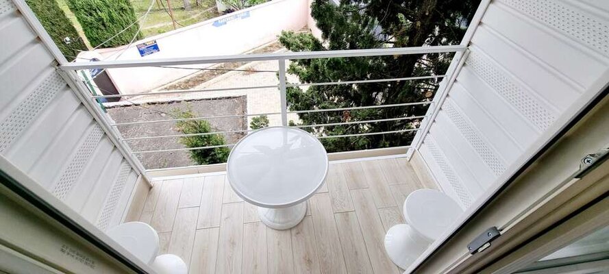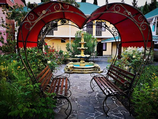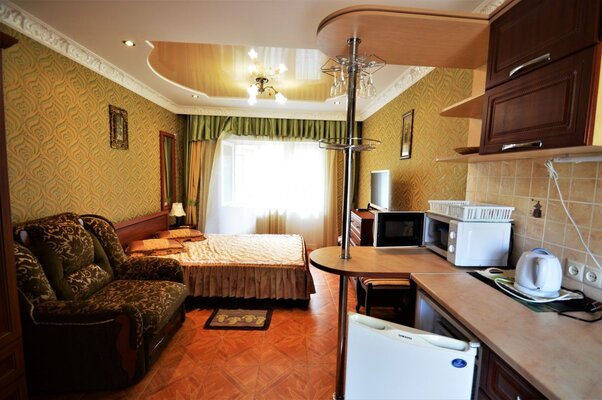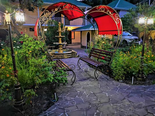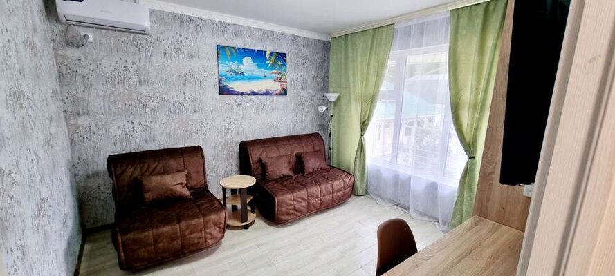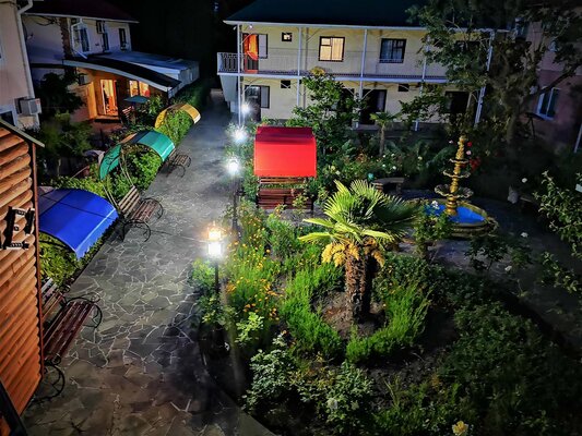 Номера категории «Полулюкс» и «Семейный» оборудованы всем необходимым для комфортного отдыха: санузлом с душем, телевизором, кондиционером и холодильником. Некоторые номера «Полулюкс» дополнительно оснащены мини-кухней. Все номера имеют балконы. Территория отеля благоустроена, украшена южными растениями и фонтаном.