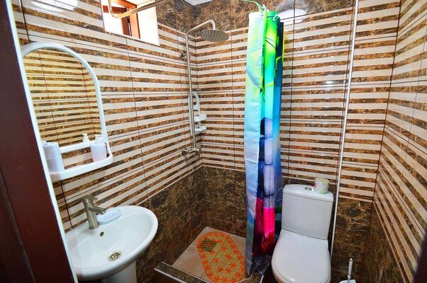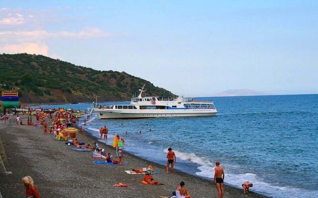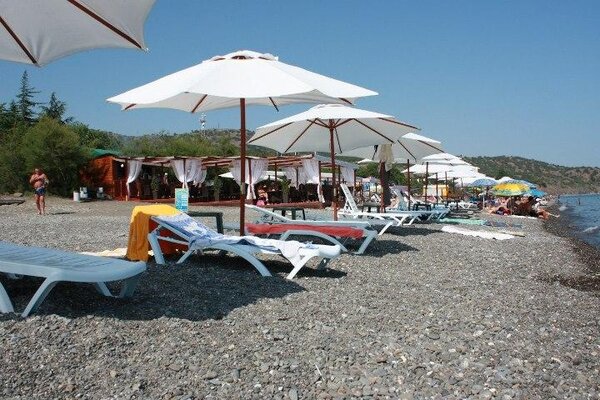 В 150 метрах от отеля расположен мелко-галечный пляж с навесами и душевыми.