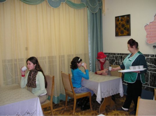 Группы детей проживают в 4-6-8 местных комнатах с частичными удобствами.