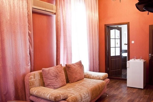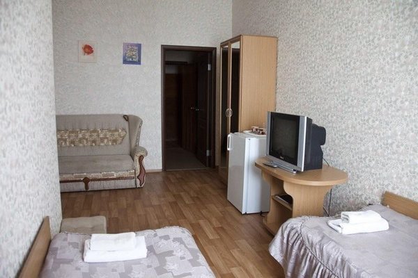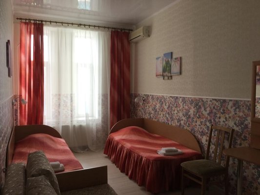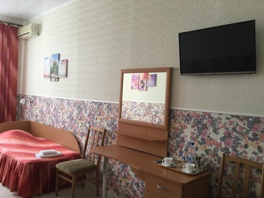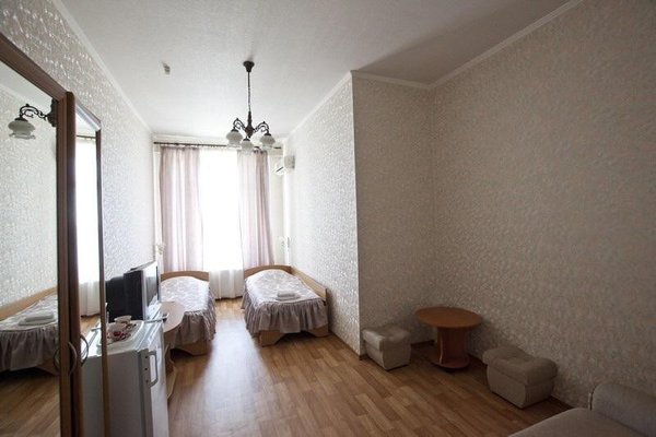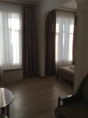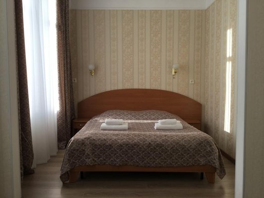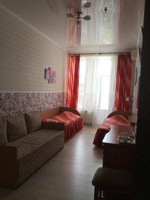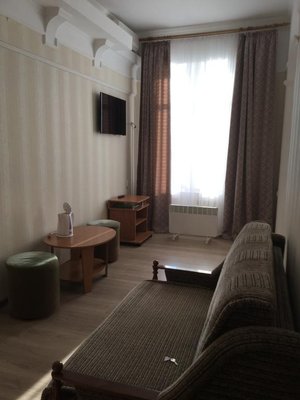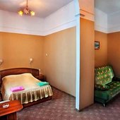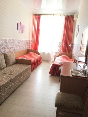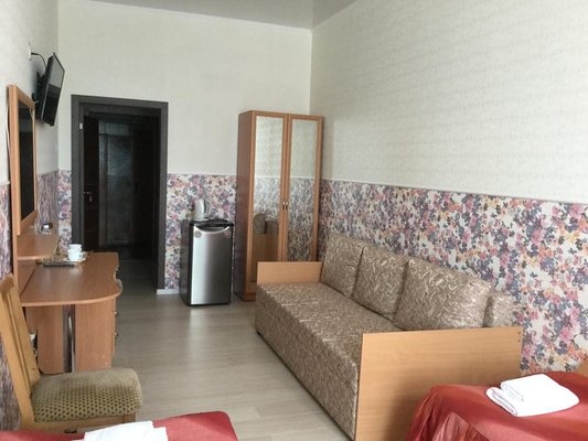 Даже самых требовательных постояльцев покорит интерьер и безупречная чистота номерного фонда. Везде современный ремонт, качественная мебель, кондиционеры, ТВ, холодильник. Небольшая гостиная зона с креслами и столиком. В санузле душевая кабинка.