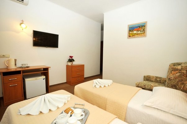 Номерной фонд представлен несколькими категориями, которые укомплектованы всем необходимым, для того, чтобы Вы смогли прожить любой, даже длительный срок на территории отеля. Все номера имеют собственные удобства и различаются по классу комфорта. Так Вы можете поселиться в обычном двухместном стандарте, а также снять Люкс.