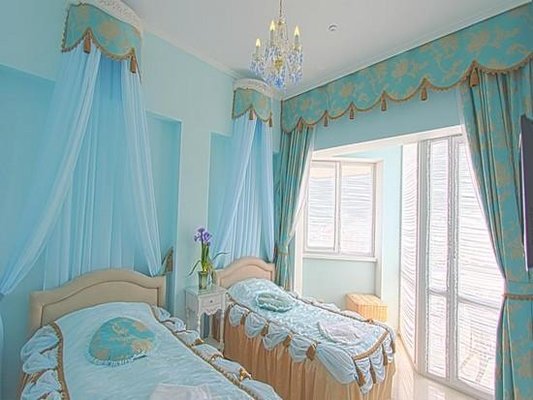 Номерной фонд представлен 14 апартаментами, оформленными в изысканном стиле. Комнаты декорированы красивыми тканями, а из больших окон от пола до потолка открывается вид на сад и город. В числе удобств ТВ, холодильник, индивидуальный санузел.