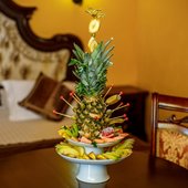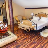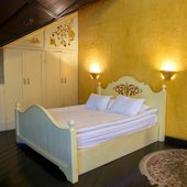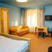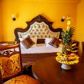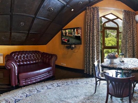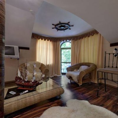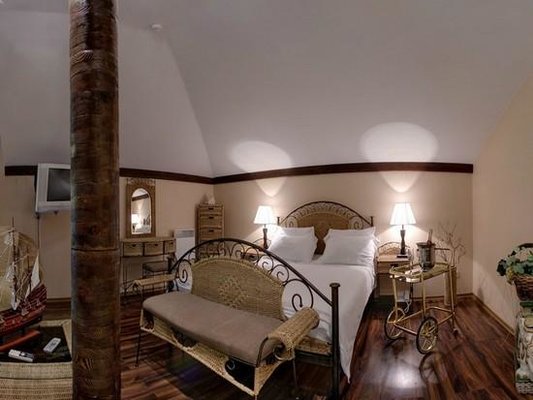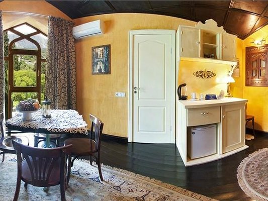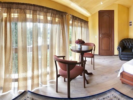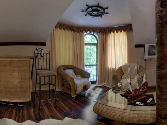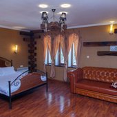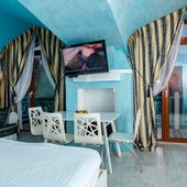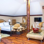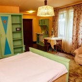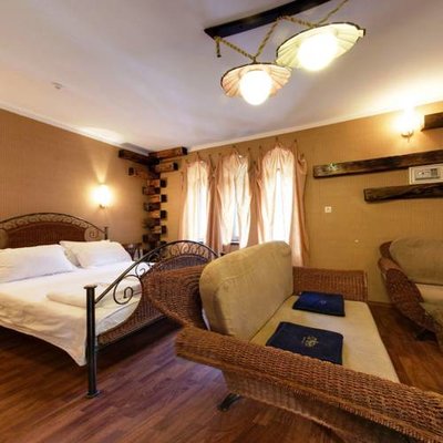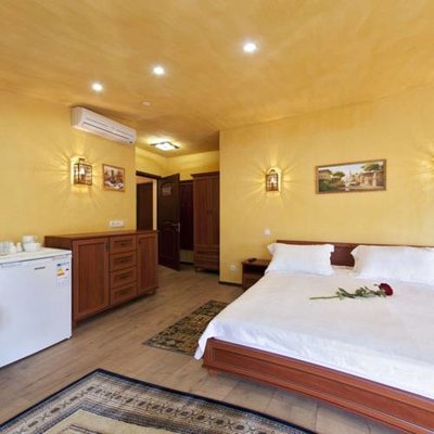 Великолепные номера, оформлены каждый в своем неповторимом стиле и обставлены качественной современной техникой и удобной мебелью. Заселяясь в номер, гости окунаются в волшебный мир красок и роскоши. Завтрак включен в стоимость проживания.