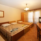 Номерной фонд представлен четырьмя типами номеров, включая «Полулюкс» и «Люкс». Дизайн выполнен в светлых теплых тонах. К удобству клиентов спальная и гостиная мебель, телевизор, климат-контроль. Номера подключены к системе отопления.