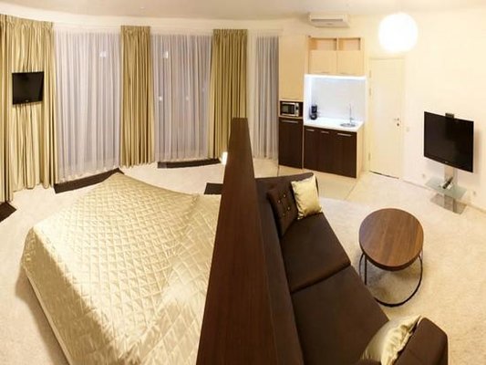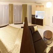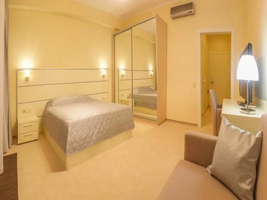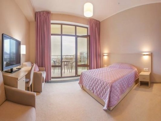 Элегантная атмосфера и роскошные интерьеры номеров люкс произведут впечатление даже на взыскательных туристов. В комнатах очень хорошо продумано пространство, есть системы для хранения вещей. Через панорамные окна-двери можно выйти на балконы.