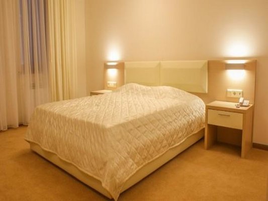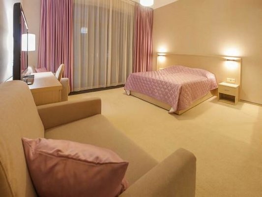 Новый отель с великолепным оформлением внутренних помещений и прилегающей территории дает возможность своим гостям позагорать на террасе, поплавать в бассейне, посетить сауну. До моря около 2 км.