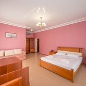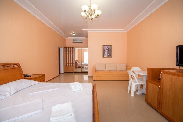 Для размещения предлагаются уютные номера категории "Стандарт" и "Люкс". Все апартаменты укомплектованы качественной итальянской мебелью, индивидуальной системой кондиционирования, ЖК-телевизором и холодильником. Собственный санузел оснащен душевой кабиной, туалетом и раковиной.