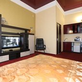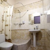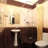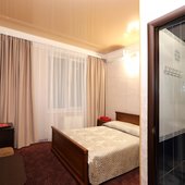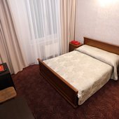 Номера просторные и светлые с классическим ремонтом. В комнате есть все необходимое: удобное спальное место, журнальный столик, вместительный шкаф, прикроватные тумбы, телевизор с кабельными каналами, электрический чайник, личная душевая с гигиеническими принадлежностями и санузел.