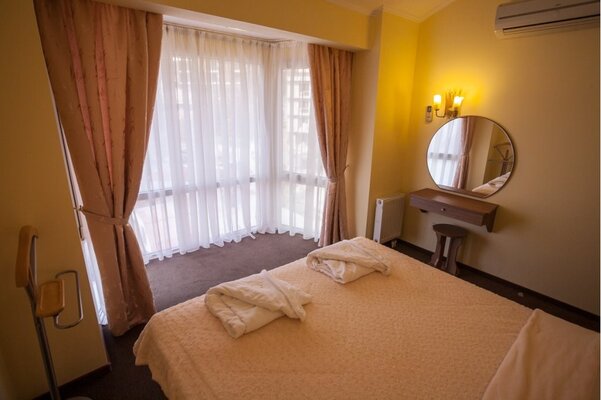 Парк-отель «Родос», раскинувшийся в живописном уголке побережья, открывает свои двери для гостей круглый год, предлагая им окунуться в атмосферу комфорта и уюта. Комплекс располагает уютными коттеджами, расположенными всего в нескольких шагах от лазурного моря. Помимо пляжного отдыха, гости могут насладиться близостью к легендарным достопримечательностям Южного берега Крыма. Рядом с отелем находится знаменитый Мисхорский парк, прогулка по которому подарит незабываемые впечатления. Величественные архитектурные ансамбли — Воронцовский и Юсуповский дворцы — напоминают о былой роскоши и величии, а замок «Ласточкино гнездо», взгроможденный на скале, притягивает взгляды своей романтической красотой. Любителям активного отдыха доступна канатная дорога на гору Ай-Петри, с которой открывается потрясающий вид на крымские пейзажи. И, конечно же, нельзя не упомянуть дегустационный зал винзавода Массандры, где гости смогут попробовать лучшие вина Крыма и погрузиться в мир виноделия. Для удобства гостей на территории отеля предоставляется бесплатный Wi-Fi, а для путешественников на автомобиле организована платная парковка. Каждый номер отеля оборудован всем необходимым для комфортного и полноценного отдыха: мягкой мебелью, современной техникой, ванной комнатой с необходимыми принадлежностями. Гости могут выбрать номер согласно своим предпочтениям — от просторных апартаментов до уютных одноместных номеров. Парк-отель – это идеальное место для тех, кто ищет спокойный и незабываемый отдых в окружении природы и истории.