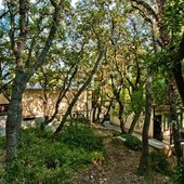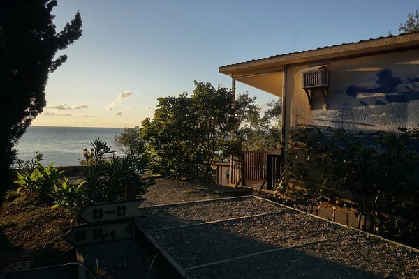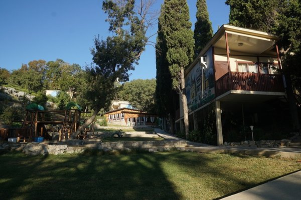 Гостиница "Зеленый мыс" находится на берегу Черного моря, в парковой зоне. Гости отеля с территории комплекса спускаются сразу на пляж. Самый дальний домик расположен в 100 метрах от пляжа.