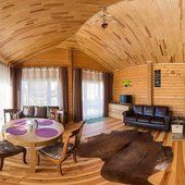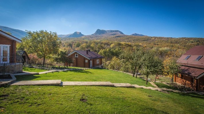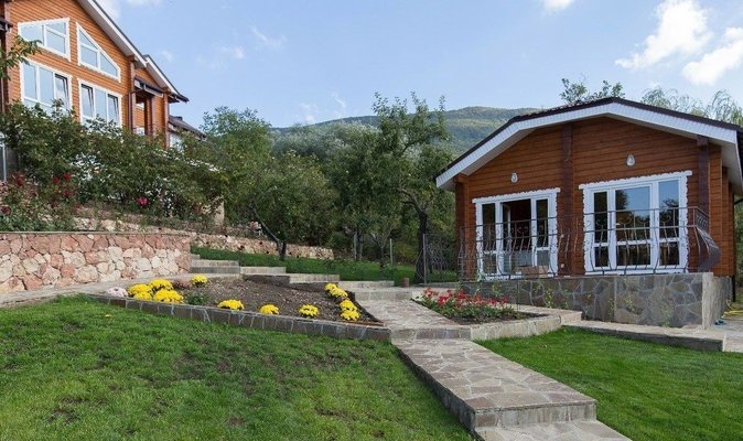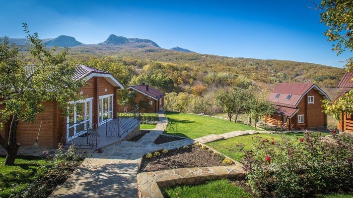 Гостиница позволяет насладиться красотой природы горного Крыма получив в том числе и удовольствие от комфортности проживания в деревянных срубах из профилированного бруса, которые уже сами по себе являются экзотикой для крымского полуострова.