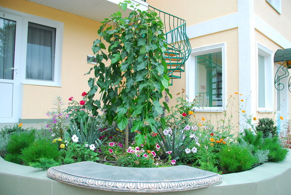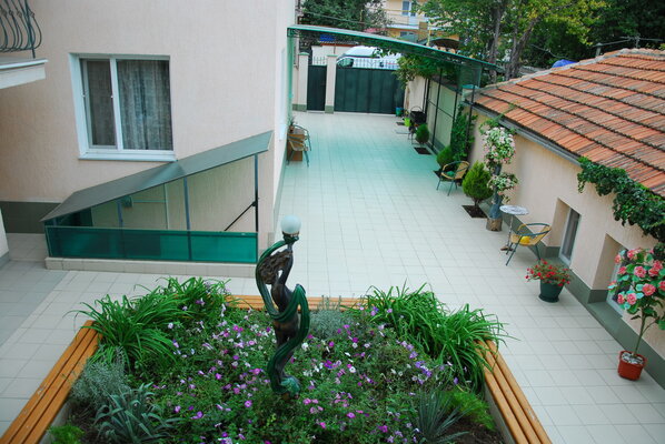 Пансион включает два двухэтажных корпуса, расположенных на благоустроенной территории в частном секторе. К услугам гостей двух- и трехместные номера, оборудованные собственным санузлом с душем, кондиционером и плазменным телевизором.