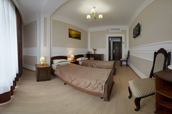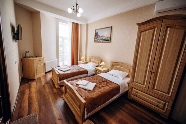 Пансионат располагается на благоустроенной закрытой территории, всего в 200 метрах от моря. Для гостей предлагаются номера категории Double и Twin с разными уровнями комфорта. Все номера оснащены индивидуальным санузлом с душем и феном, кондиционером, чайником и ЖК-телевизором. В большинстве номеров есть балкон, за исключением одного, где предусмотрен французский балкон. На территории пансионата работают ресторан, открытый бассейн с шезлонгами и сауна. Также доступен безлимитный интернет для удобства отдыхающих.
