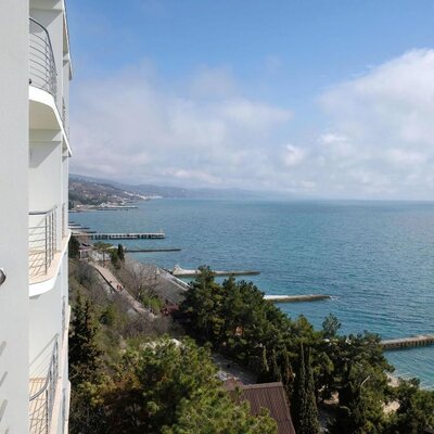 Стильные номера со светлым интерьером, кондиционером, собственным санузлом, меблированным балконом с видом на море, плазменным телевизором, феном и электрочайником.