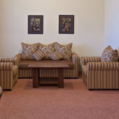 На втором этаже северного крыла пансионата находится "детская комната" для маленьких постояльцев. Совсем маленькие дети могу находиться в детской комнате только под присмотром родителей, а вот если ребенку уже исполнилось три года, тогда Вы можете спокойно оставить его на попечение аниматоров и пойти, например, позагорать возле бассейна.