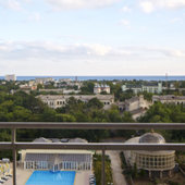 Собственный песчаный благоустроенный (зонтики, лежаки, биотуалеты) пляж в 800 м от корпуса. Производится доставка автобусом. К услугам гостей бар, прокат водных мотоциклов, виндсерфинг, катера и яхты. Зонтики, лежаки, биотуалеты, доставка до пляжа и обратно - бесплатно по расписанию.