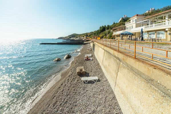 Собственный пляж протяженностью более 350 метров. Имеется волейбольная, футбольная, бадминтонная площадки и площадка для игры в стритбол.