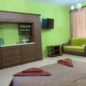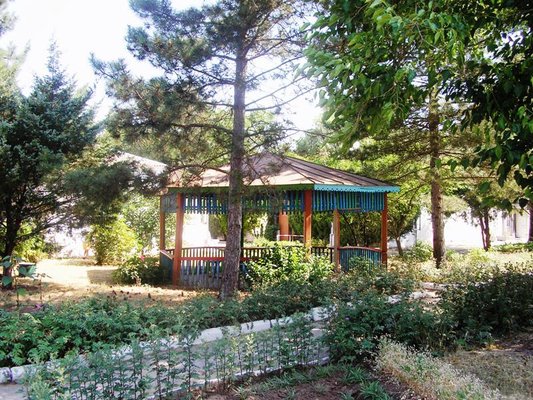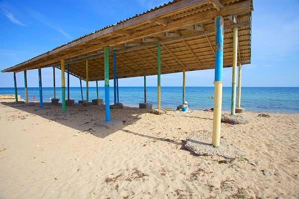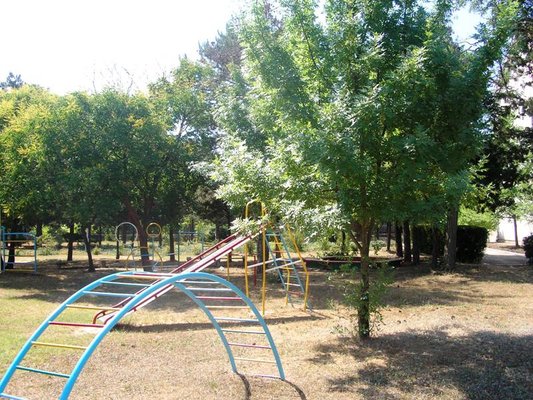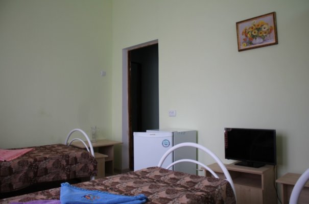Собственный песчаный пляж в 300 м от санатория. Пляж оборудован теневыми навесами, душем, туалетом, кабинками для переодевания.