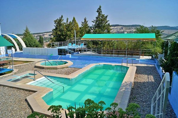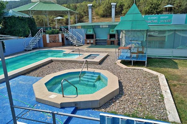 Открытый бассейн с минеральной водой. Есть детское отделение. Пользование бассейном входит в стоимость.