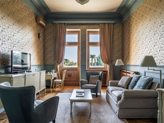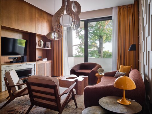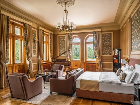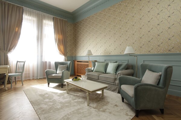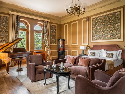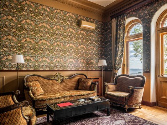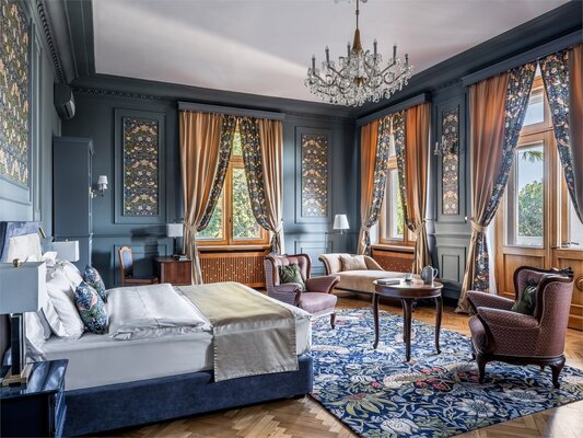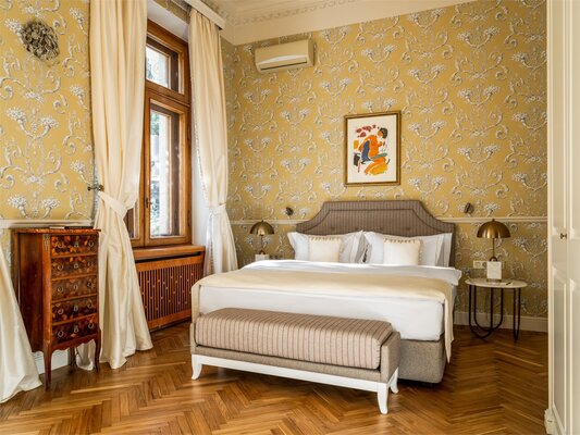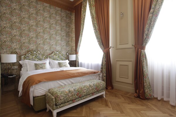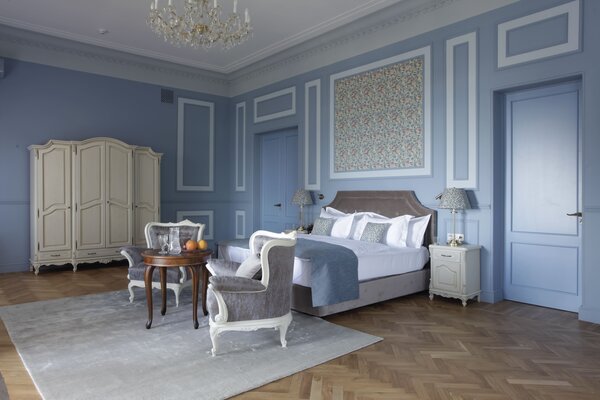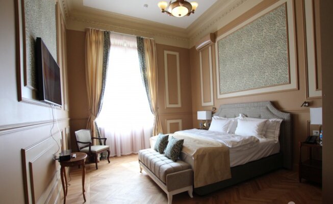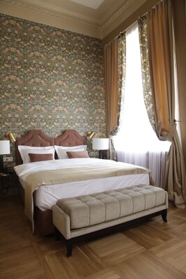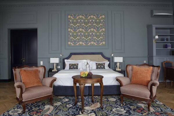 Отель размещён в историческом здании 1958 года постройки на территории около двух гектаров. Гостям предлагаются 18 номеров с уникальным дизайном, оформленных предметами искусства и подлинной антикварной мебелью. Номера укомплектованы качественной мягкой мебелью, набором необходимой бытовой техники и санузлом с ванной. В обеденном зале гости сервируются завтраками по системе «меню-заказ».