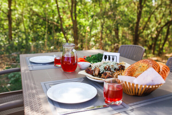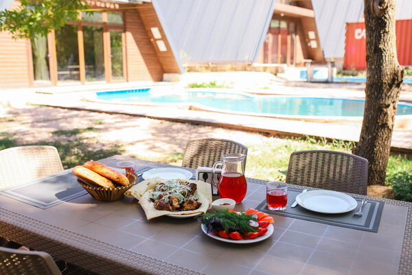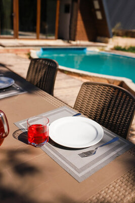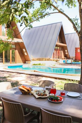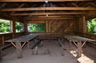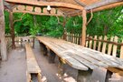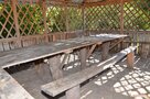 - Столы — на территории расположены отдельно стоящие столы. Стоимость 1000 ₽/день (в стоимость входит мангал). Стол без мангала 800 ₽/день.