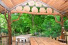 - Терраса Восточные ворота — вместимость до 20 человек. Стоимость: Входной билет в парк "Викинг" (согласно ценам на официальном сайте Парка "Викинг") + 120 ₽/человек за беседку в день. В таком случае Вы сможете пользоваться всей инфраструктурой парка и участвовать в активностях по желанию.