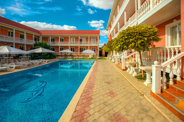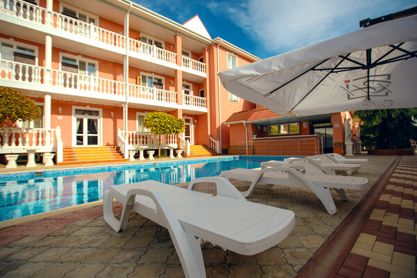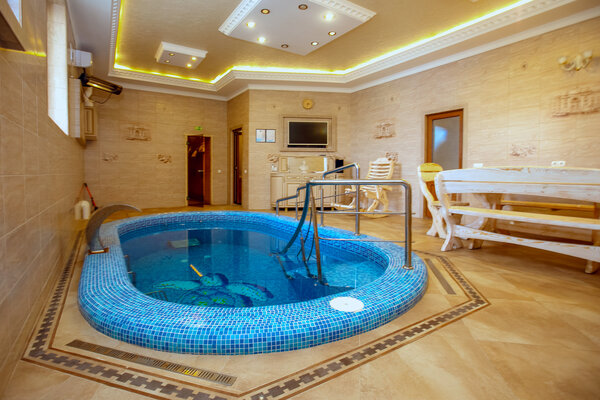 - открытый бассейн с детской зоной, джакузи и эффектной подсветкой;