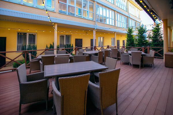 - комфортная летняя веранда с мягкими креслами для отдыха и релаксации;