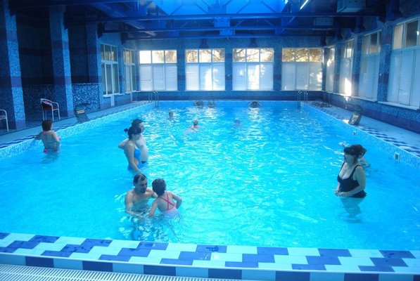 В бассейне с подогреваемой водой можно просто поплавать в свое удовольствие или поиграть с детьми. Крытый бассейн 8х16 м. с пресной подогреваемой водой, детская зона, искусственный фонтан гидромассажа.
