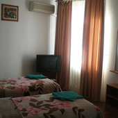 База отдыха «Романтик» расположена, в одном часе езды от центра Севастополя – в поселке Кача, на первой линии от моря. Зеленая благоустроенная территория базы отлично подходит для семейного отдыха с детьми.