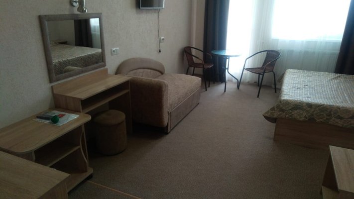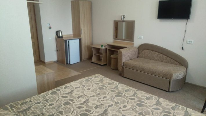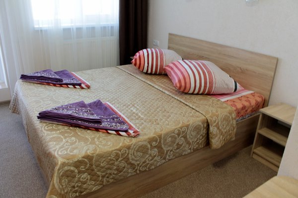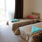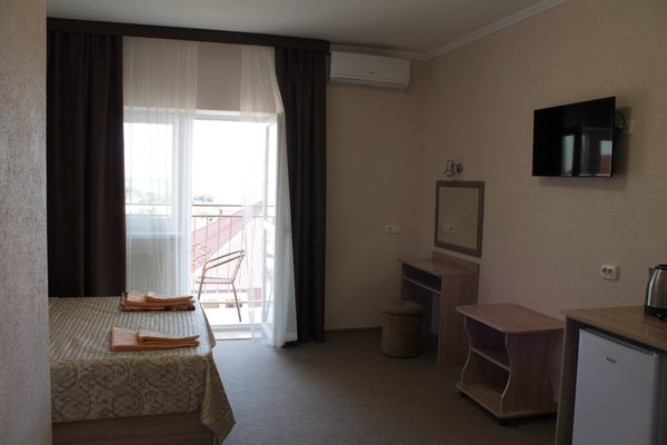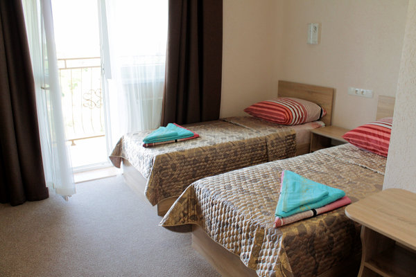 Номерной фонд Гостевого дома включает 43 просторных комфортабельных номера с балконами, в которых есть всё для уютного отдыха у моря. Удобные кровати, мебель, кондиционер, телевизор, холодильник, чайник, санузел, и бесплатный интернет (Wi-Fi).