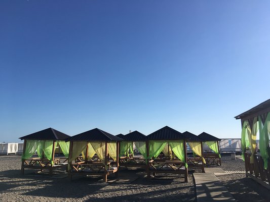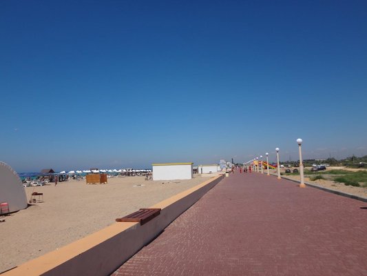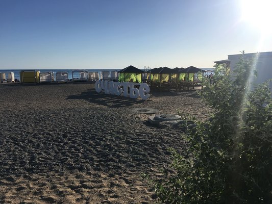 Поселковый пляж находится в 500 метрах от отеля. Пляж мелко-галечный и оснащен всем необходимым — есть шезлонги, лежаки. Зонтики, душевые, кабинки для переодевания, на побережье работают бары, предусмотрены водные развлечения.