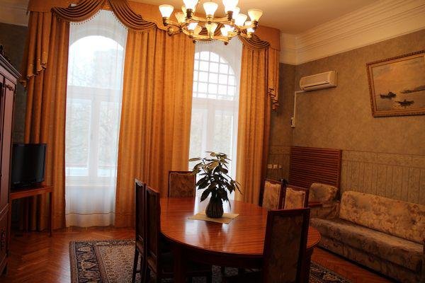 Отдых здесь был просто сказочным, хотя и погода оказалась холодной. Территория вокруг санатория ухоженная, зеленая, аккуратная. Номер нам достался двухкомнатный, оборудован всем необходимым. Полотенца меняли раз в пару дней. Питание нормальное, хотя и диетическое. За каждым номером закреплен отдельный стол, так что не надо толкаться и ждать в очереди. С утра мы проходили лечебные процедуры, а в свободное время посещали экскурсии и просто гуляли. Море чистое (правда, холодное), на пляж есть все необходимое. Каждый день были какие-то развлечения, кроме воскресенья. Здоровье мы, в целом, укрепили, врач назначил все нужные процедуры.