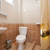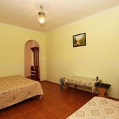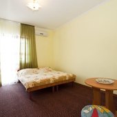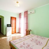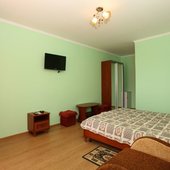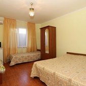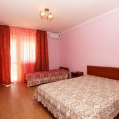 Гостевой дом находится всего в 100 метрах от Золотого Пляжа. Пляж оборудованный, дно пологое, что еще надо для отдыха с детьми. В гостевом доме три жилых корпуса. Есть однокомнатные и двухкомнатные номера: стандарты, полулюксы и люксы для 2-5 чел.