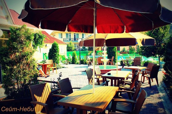 На территории базы отдыха к услугам гостей большая благоустроенная столовая и мини-маркет. Предлагается 3-х разовое сбалансированное комплексное питание, или же вы сможете заказать любое блюдо из ассортимента меню. Шеф-повар предлагает вам блюда европейской и восточной кухни, а также изысканные шедевры из морепродуктов.