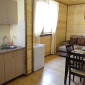 В каждом доме две спальни с кондиционерами, два санузла, спутниковое телевидение, интернет, холодная и горячая вода круглосуточно, холодильник, собственная кухня и все, что необходимо для приготовления пищи на кухне. Если вы приехали на автомобиле, то можете поставить его возле дома, для посиделок на улице возле каждого домика устроены скамейки со столом.