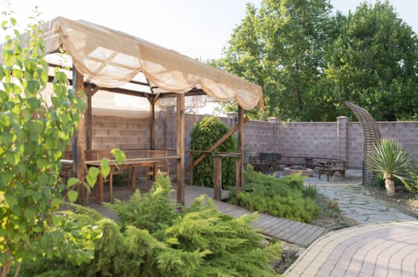 На территории отеля созданы условия для полноценного отдыха: лаундж-зона с качелями, беседками и уличной кальянной, баня, охраняемая парковка и Wi-Fi. Для юных постояльцев предусмотрена игровая площадка с батутом. Всего 10 минут неспешной прогулки отделяют отель от песчано-галечного пляжа с раздевалками, лежаками и шезлонгами.