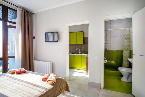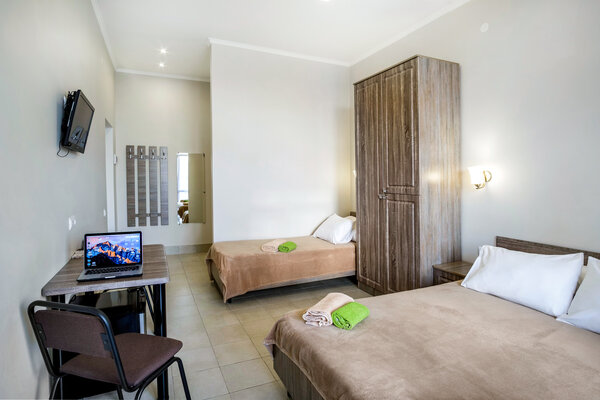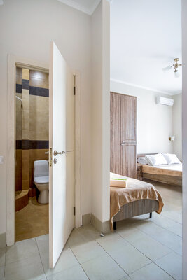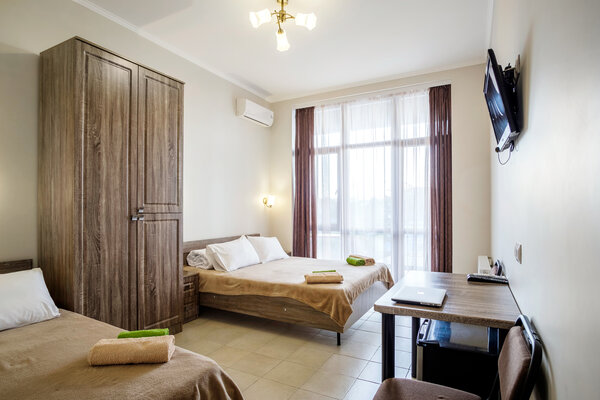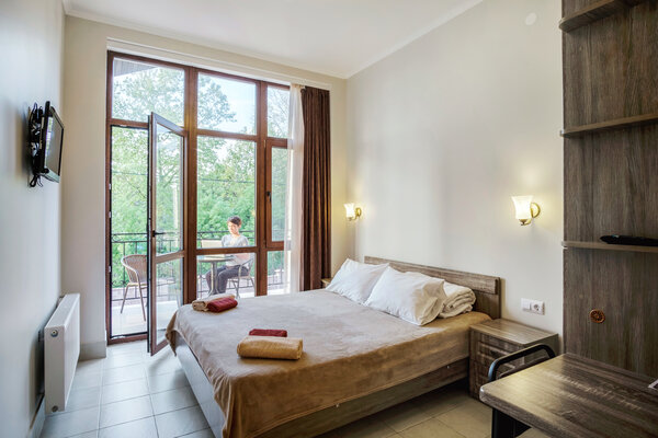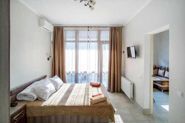 К услугам гостей светлые и просторные номера, включая двухкомнатные апартаменты с террасой. Каждый номер оборудован всем необходимым для комфорта: индивидуальный санузел с душем, феном и туалетными принадлежностями, кондиционер, электрочайник, мини-холодильник.