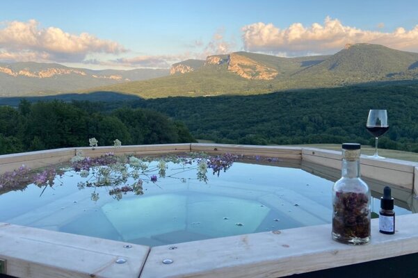 Эко-отель «Шёпот трав» находится в Бельбекской долине, окруженной горами на юге Крыма. Это уединенное место на высоте 500 метров над уровнем моря предназначено для отдыха на свежем воздухе, релаксации и наслаждения природой. Здесь можно пройти по горным тропам, посетить озера и водопады, полюбоваться развалинами древних храмов и крепостей, а также увидеть долину с высоты птичьего полета.